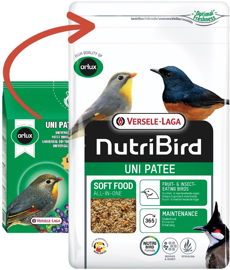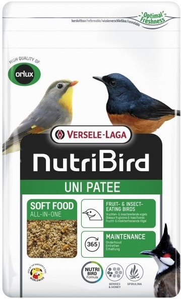 - ORLUX UNI PATEE MAINTENANCE to kompletny pokarm dla miękkojadów - małych ptaków owoco- i owadożernych oraz uzupełniająca dieta dla ptaków tropikalnych.