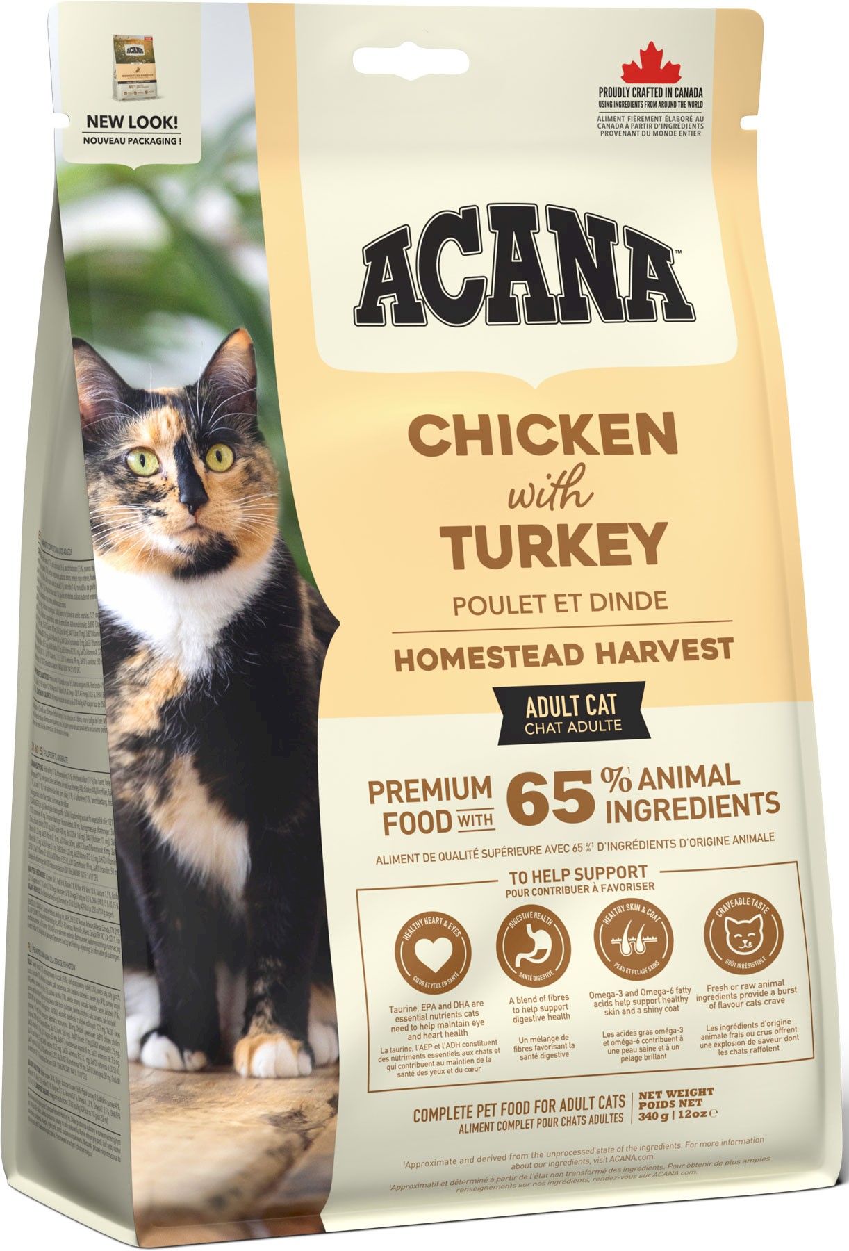 Cechy karmy ACANA Adult Cat Homestead Harvest: |