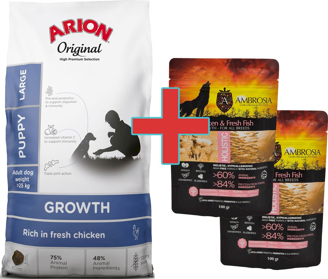 Arion Original Growth Puppy Large Chicken 12kg + 200g Karmy SuperPremium GRATIS !!