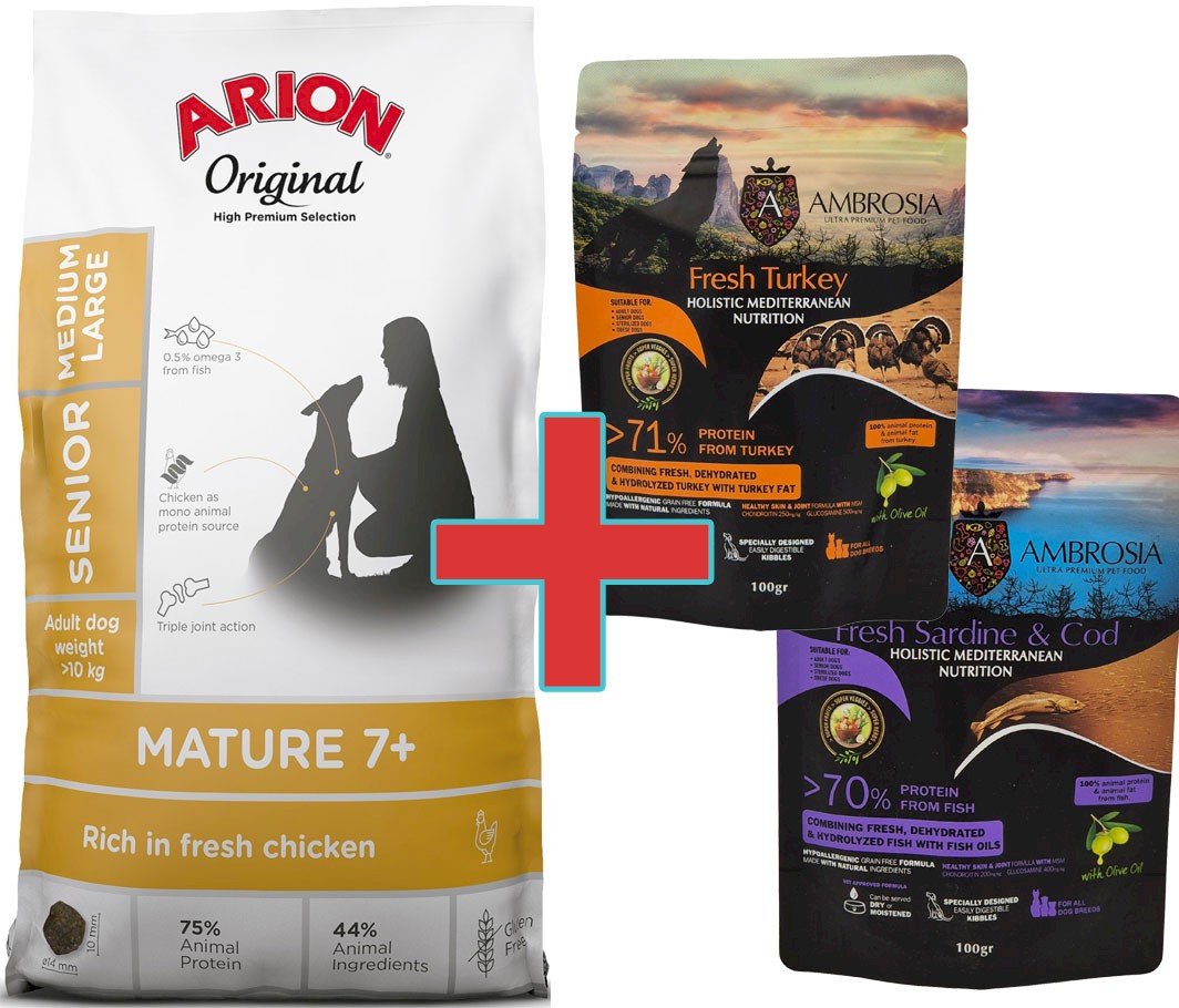 Arion Original Mature 7+ Senior Medium Large Chicken 12kg + 200g Karmy SuperPremium GRATIS !!