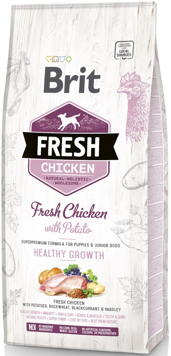 Cechy karmy BRIT FRESH Chicken with Potato Puppy Healthy Growth: |
