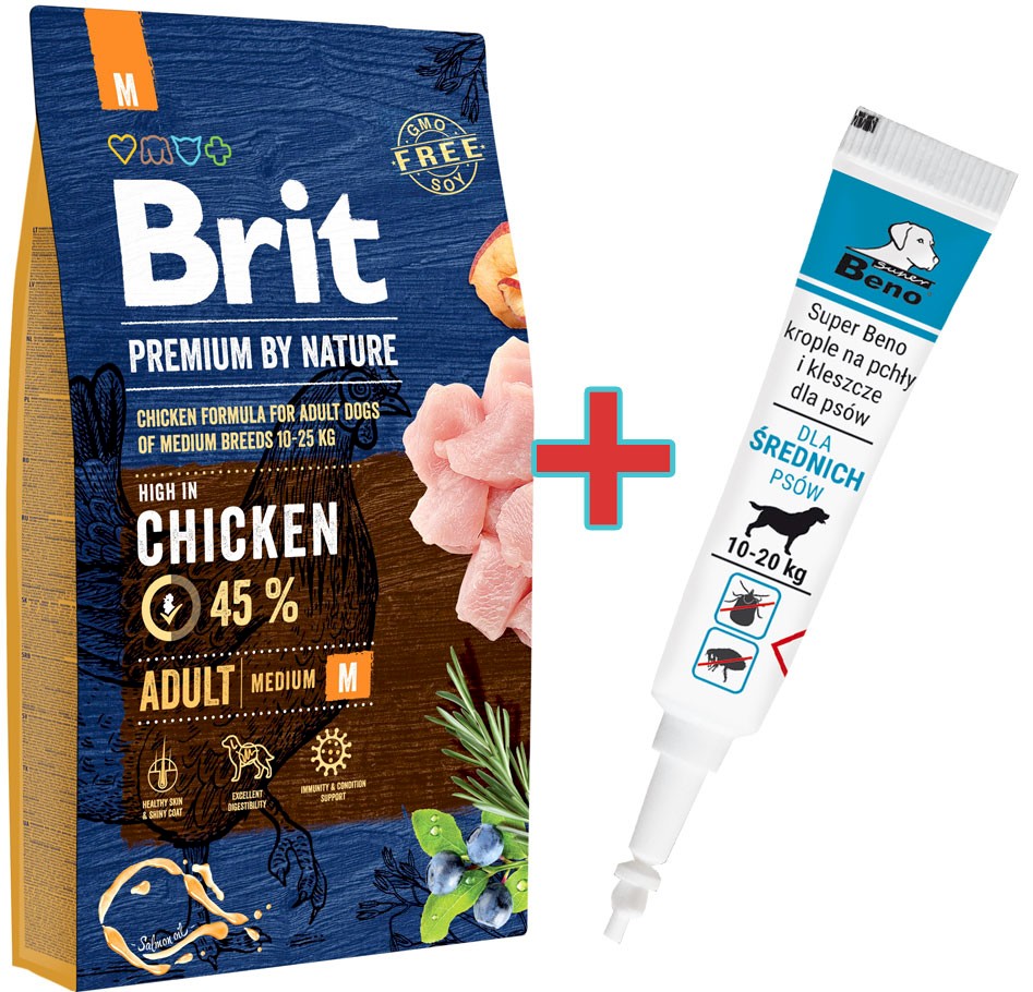 BRIT Premium by Nature Adult Medium 8kg + Krople na KLESZCZE GRATIS !!