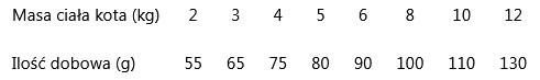 - Obniżona zawartość Magnezu, Wapnia i Potasu - w celu ograniczenia powstawania kamieni i kryształów moczowych.