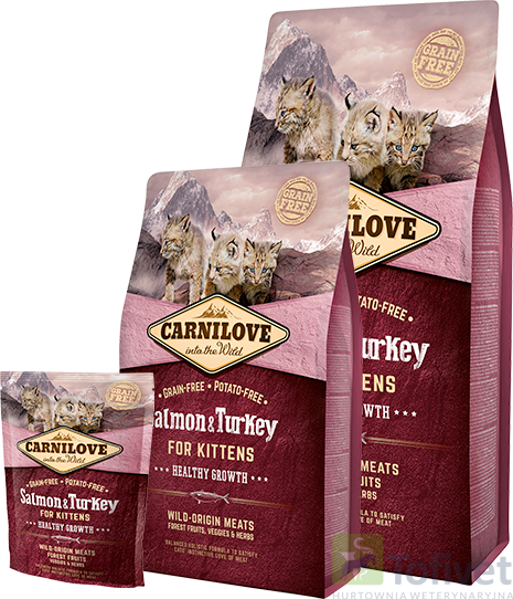 Cechy karmy CARNILOVE Salmon & Turkey Healthy Growth for Kittens: