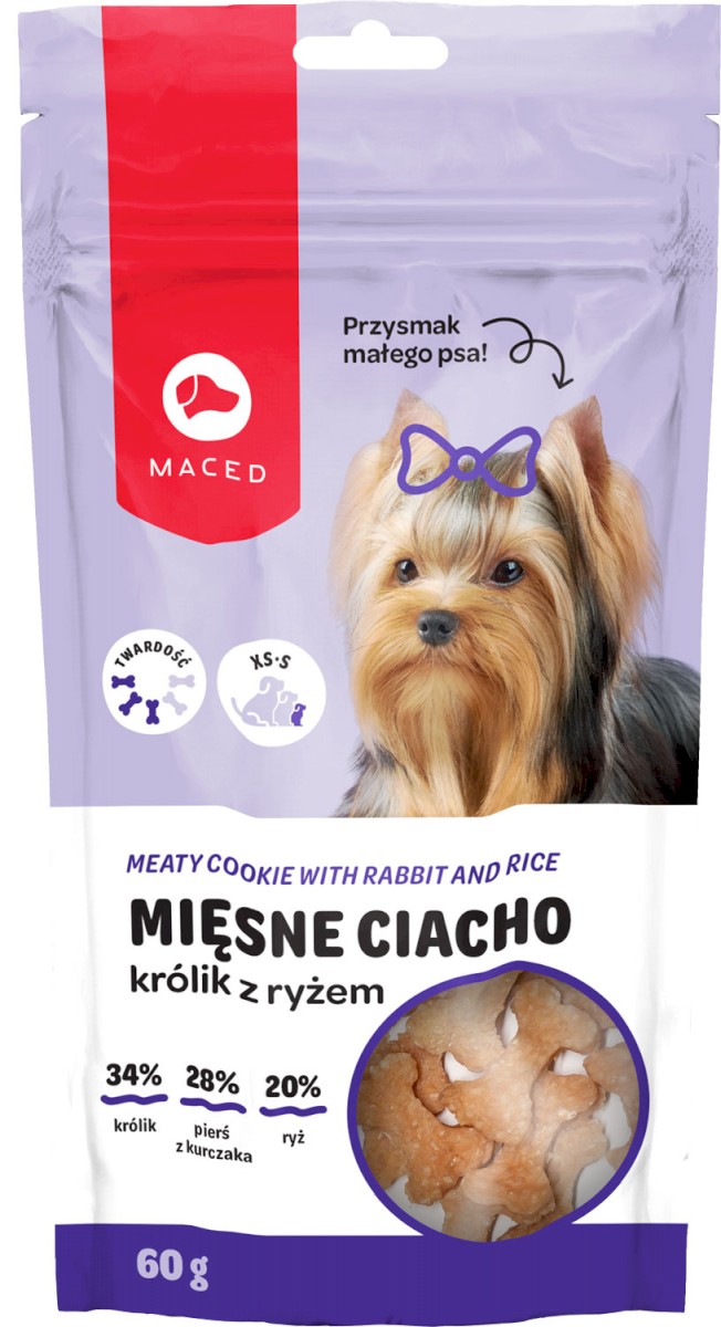Pytanie o produkt MACED Mięsne Ciacho Królik z Ryżem Przysmak małego psa 60g: