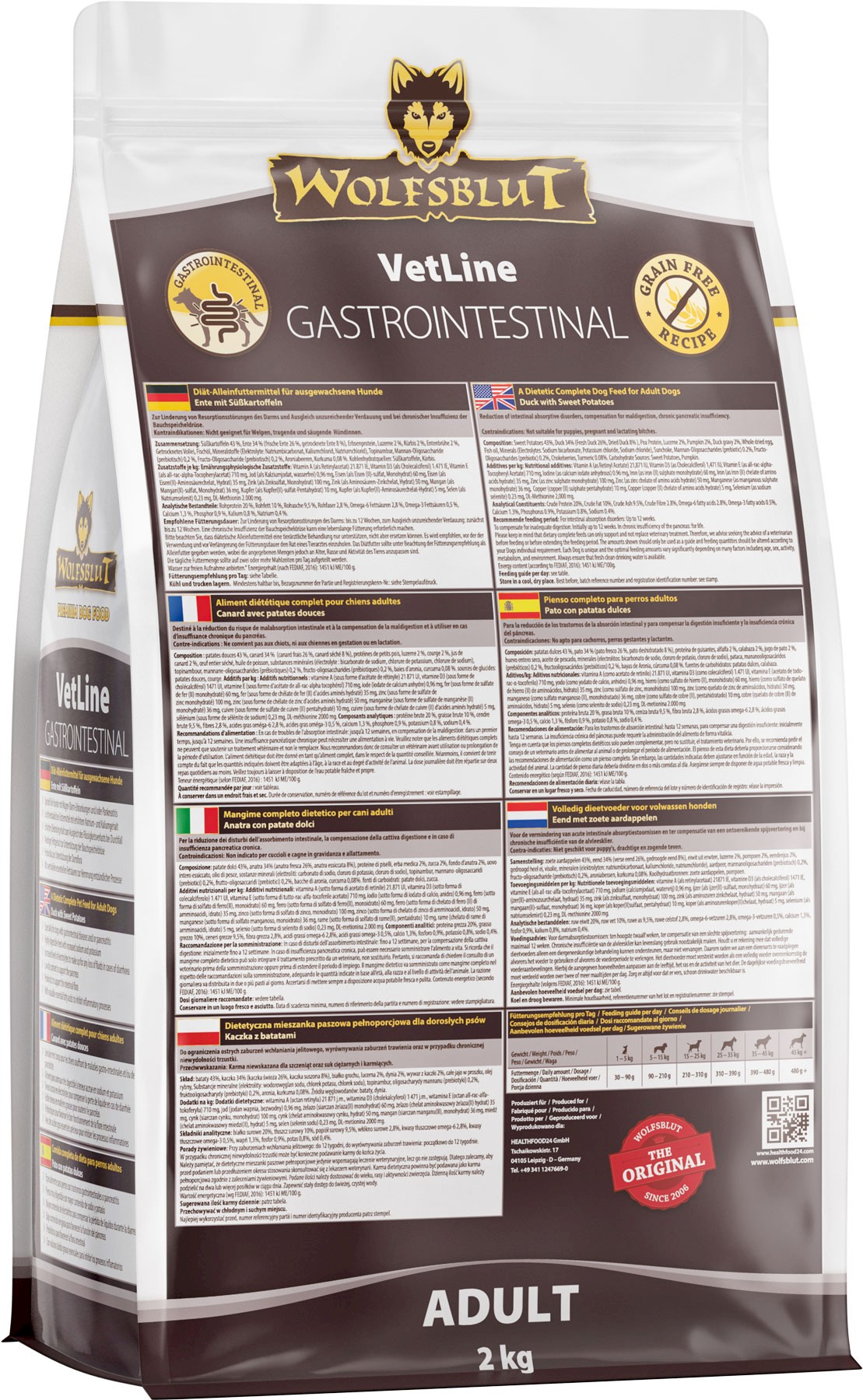 Cechy WOLFSBLUT VetLine Gastrointestinal Adult Duck with Sweet Potatoes: