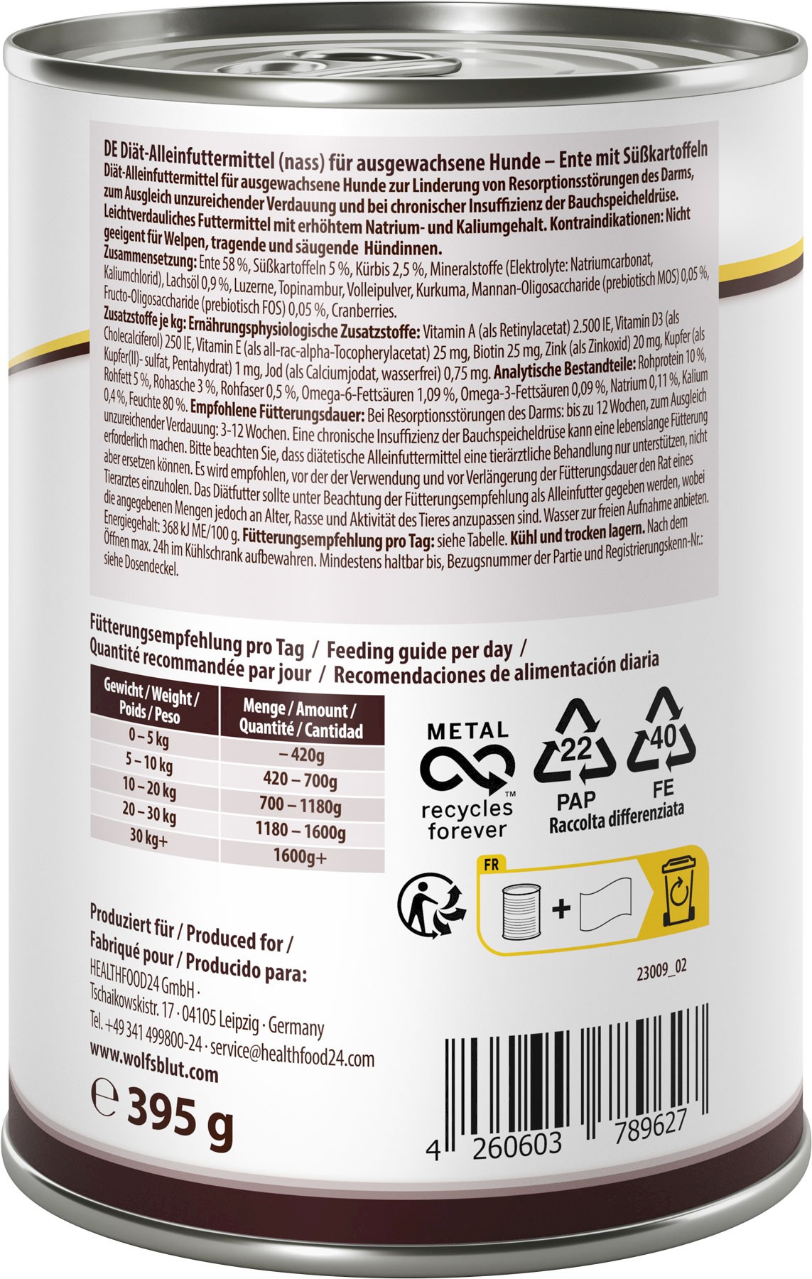 - Szczególnie polecana dla psów z chorobami przewodu pokarmowego i/lub zapaleniem trzustki.