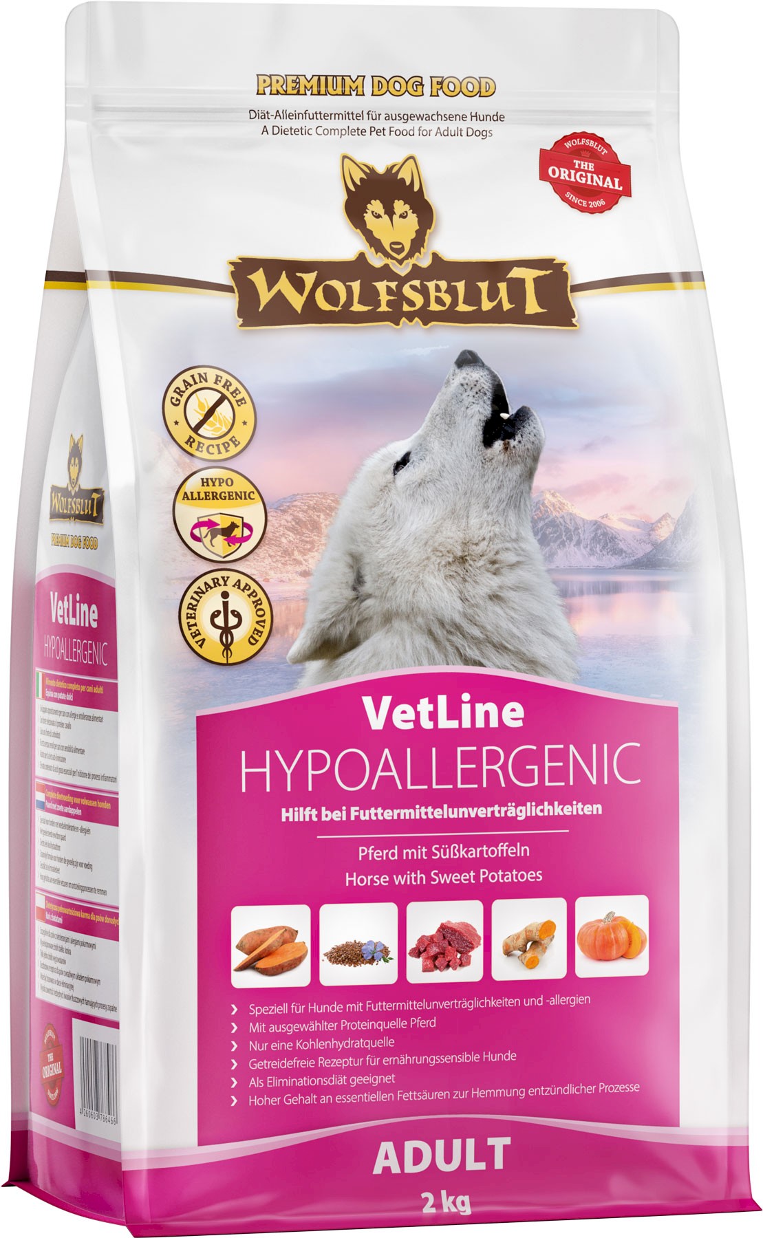 Cechy WOLFSBLUT VetLine Hypoallergenic Adult Horse with Sweet Potatoes: