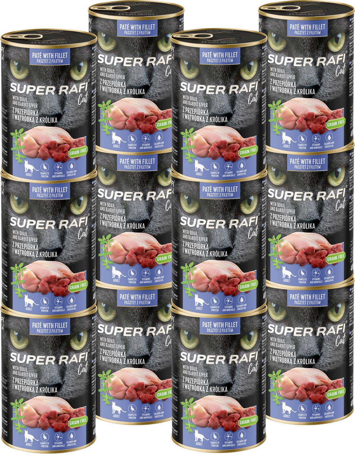 DOLINA NOTECI Super RAFI Cat Adult Przepiórka i Wątróbka z Kurczaka 12x400g