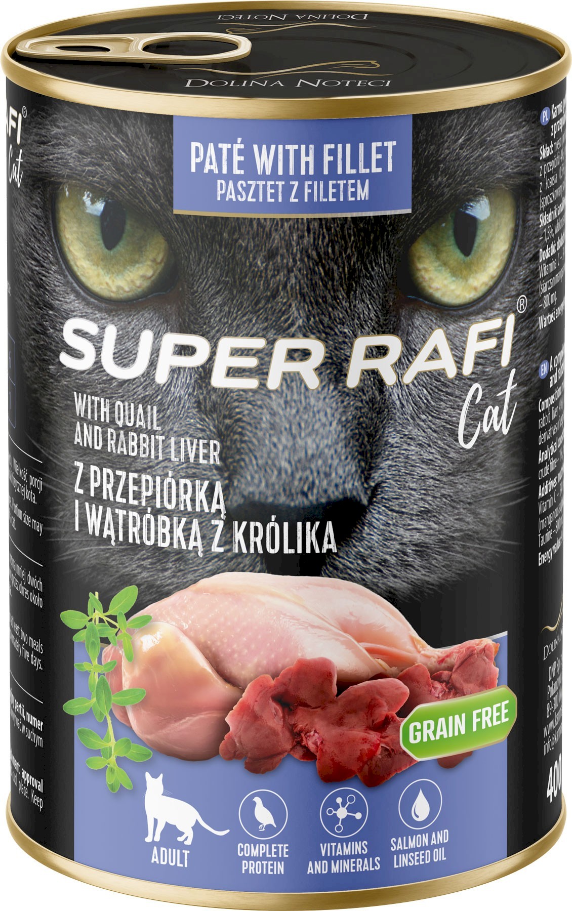 Pytanie o produkt DOLINA NOTECI Super RAFI Cat Adult Przepiórka i Wątróbka z Kurczaka 12x400g: