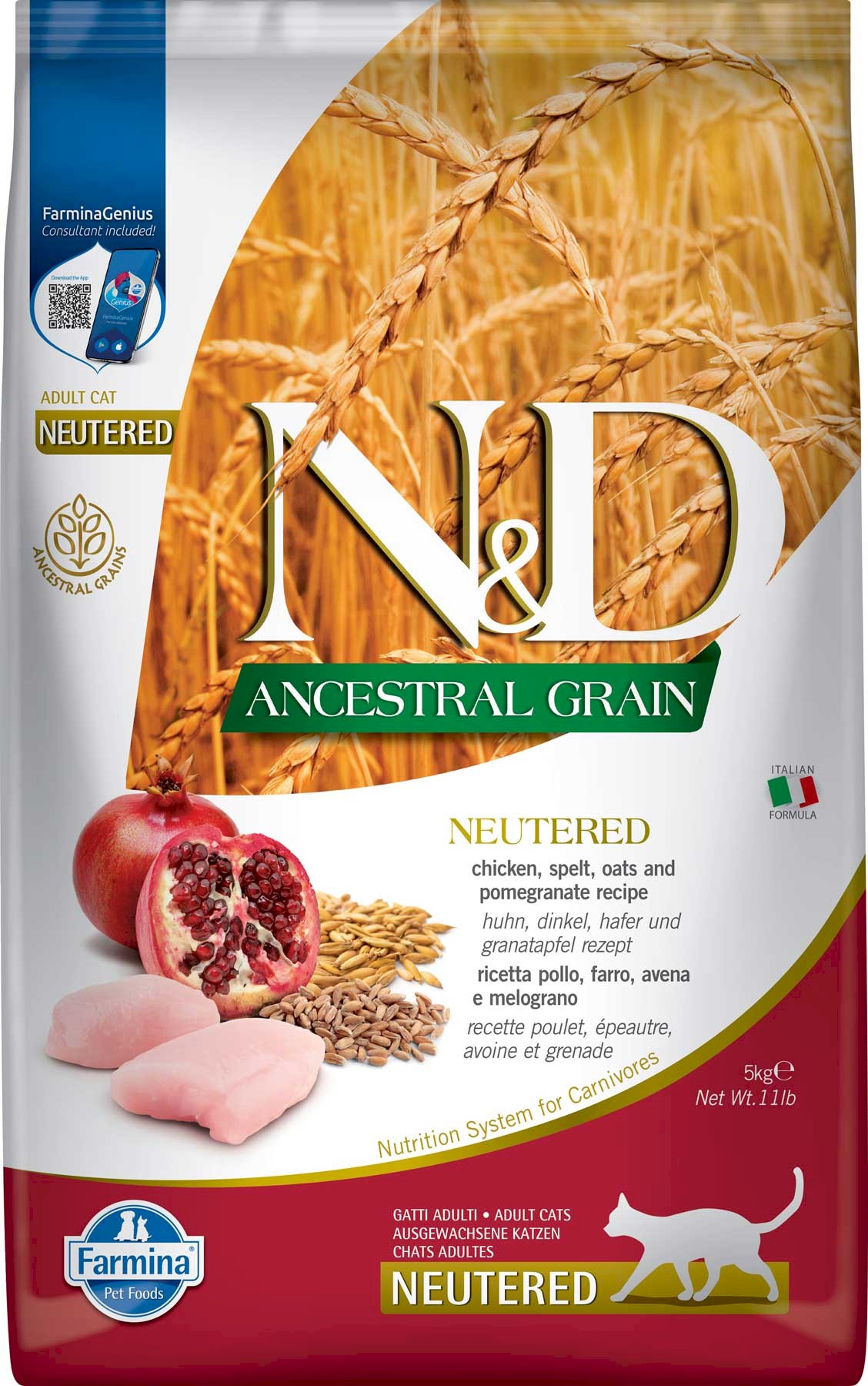 Cechy Farmina Natural & Delicious Ancestral Grain Chicken & Pomegranate Neutered Adult Cat: |