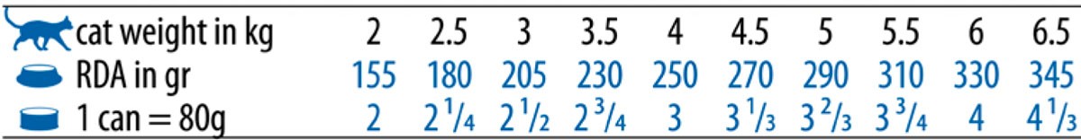 stek z tuńczyka (55%), kalmar (10%), krewetka (5%), olej z ryb, tłuszcz zwierzęcy, fruktooligosacharydy, siarczan chondroityny, glukozamina, witaminy, minerały.