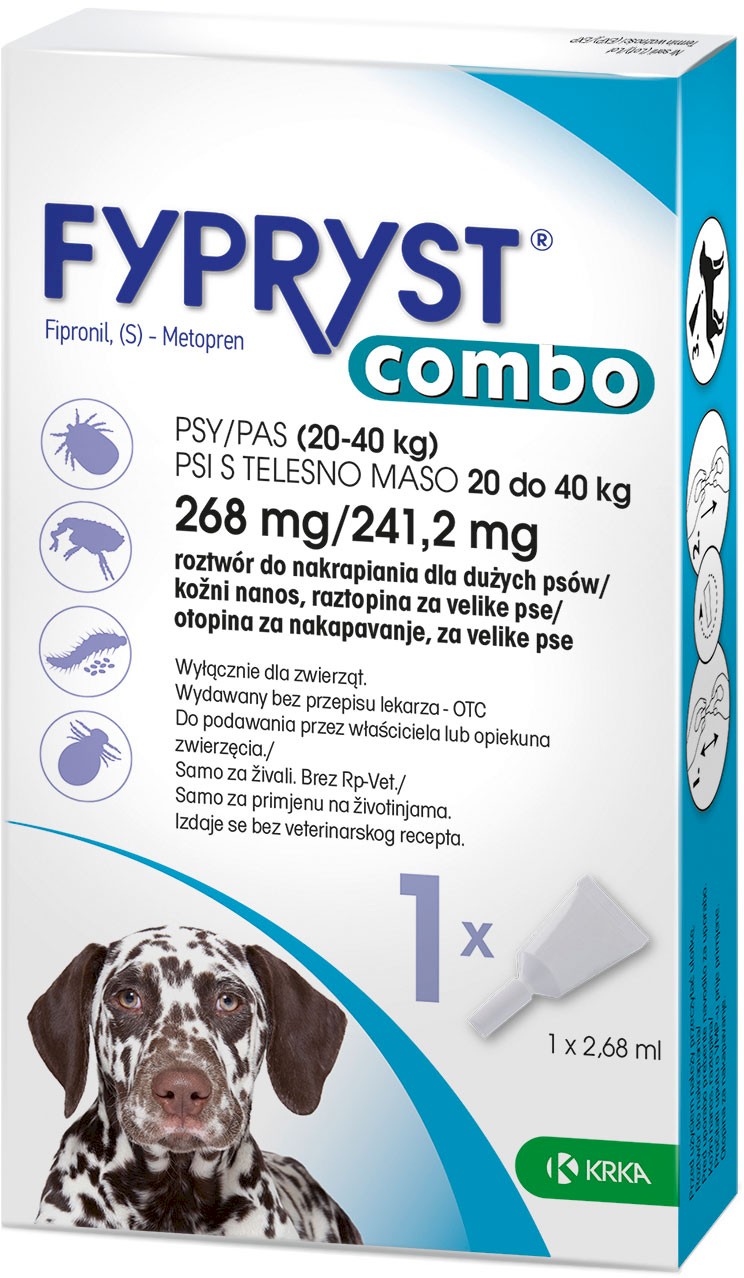 Cechy preparatu do nakraplania psów Krka FYPRYST COMBO 20-40kg: