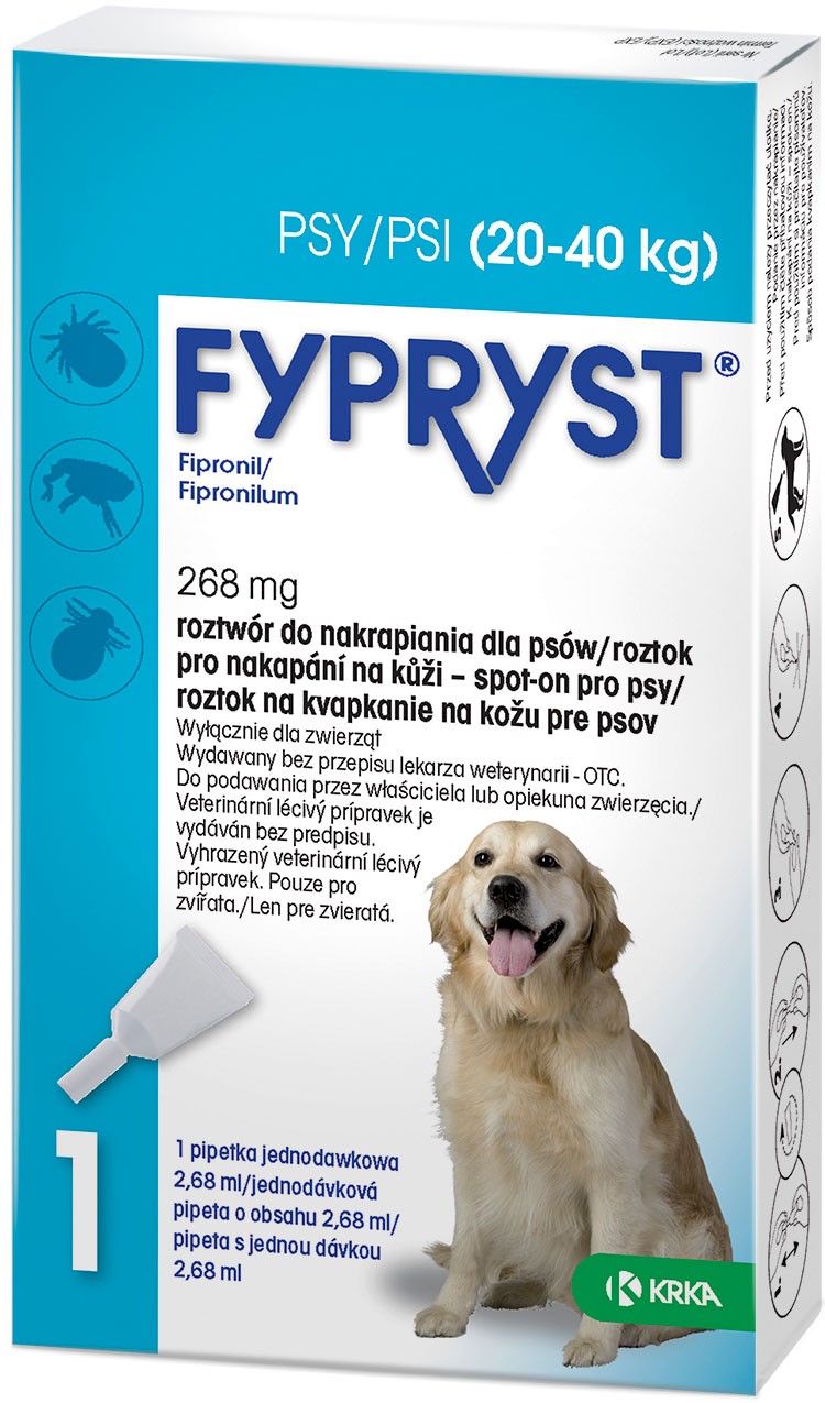Cechy preparatu do nakraplania psów Krka FYPRYST SPOT-ON 20-40kg: |
