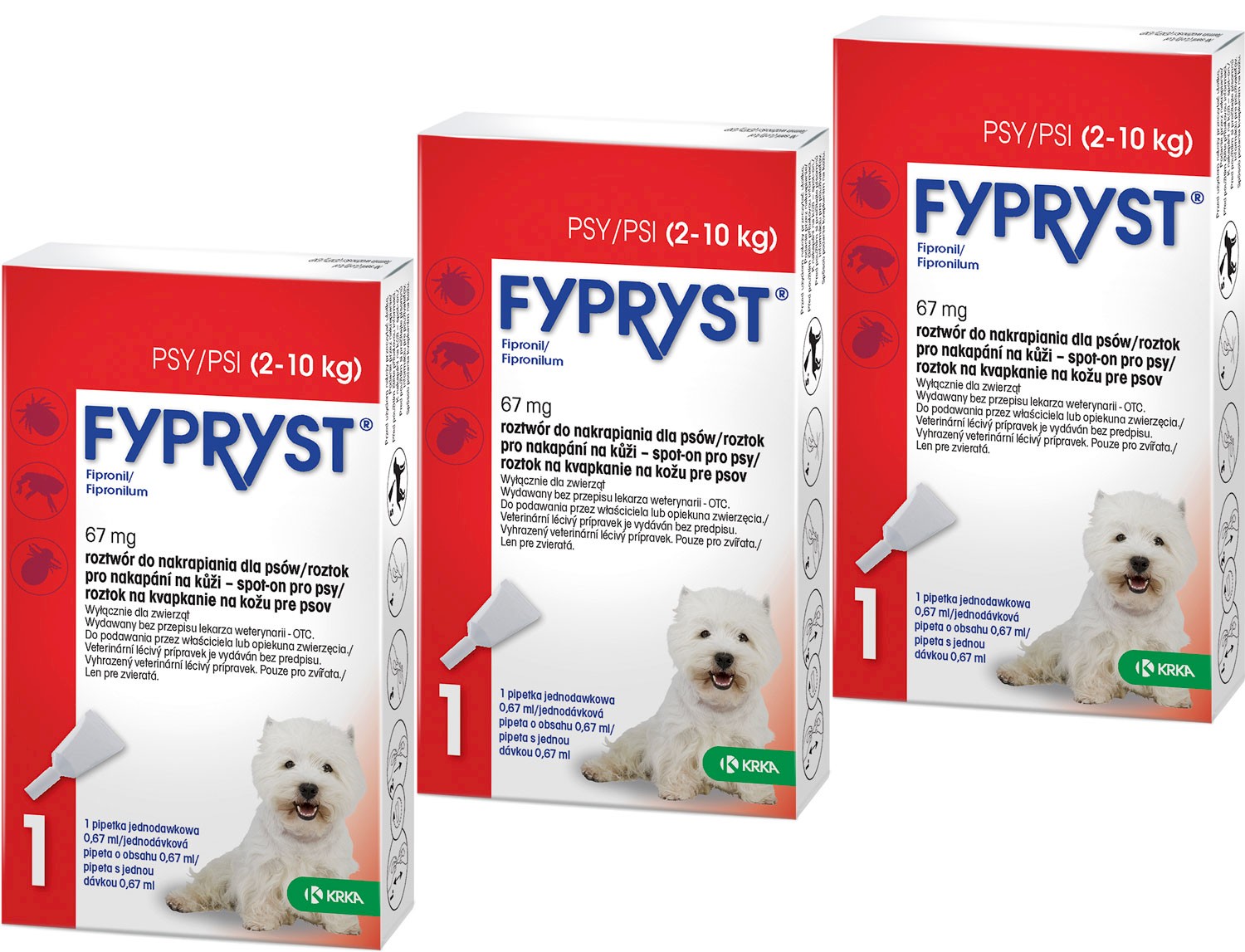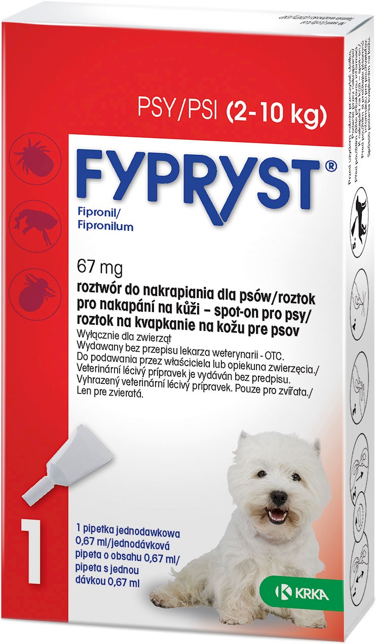 Cechy preparatu do nakraplania psów Krka FYPRYST SPOT-ON 2-10kg: |