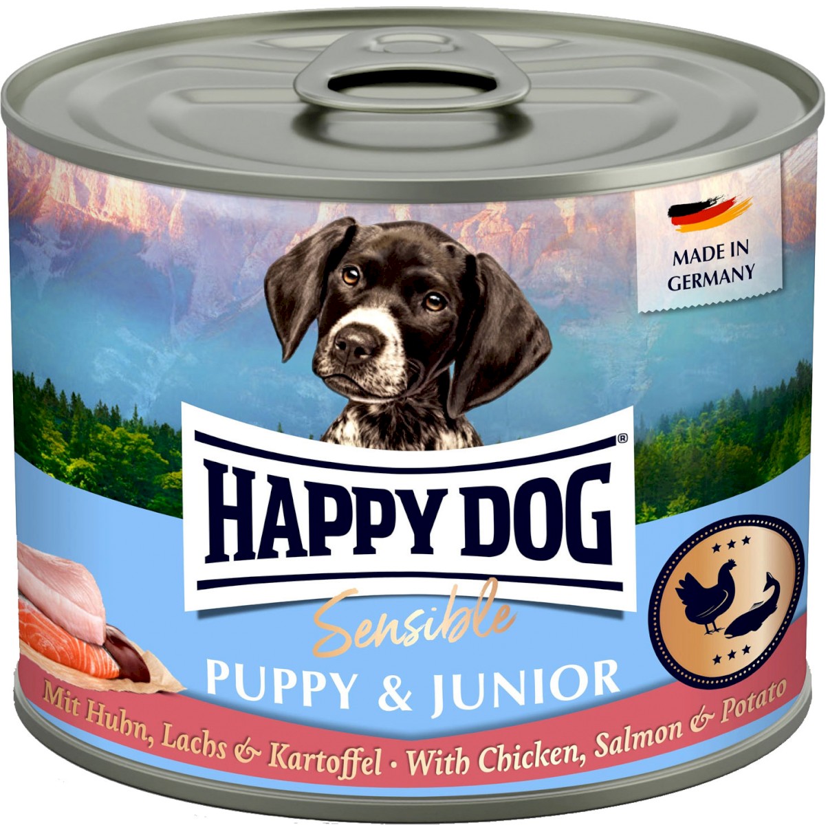 Cechy Happy Dog Sensible PUPPY & JUNIOR Chicken, Salmon & Potato: |
