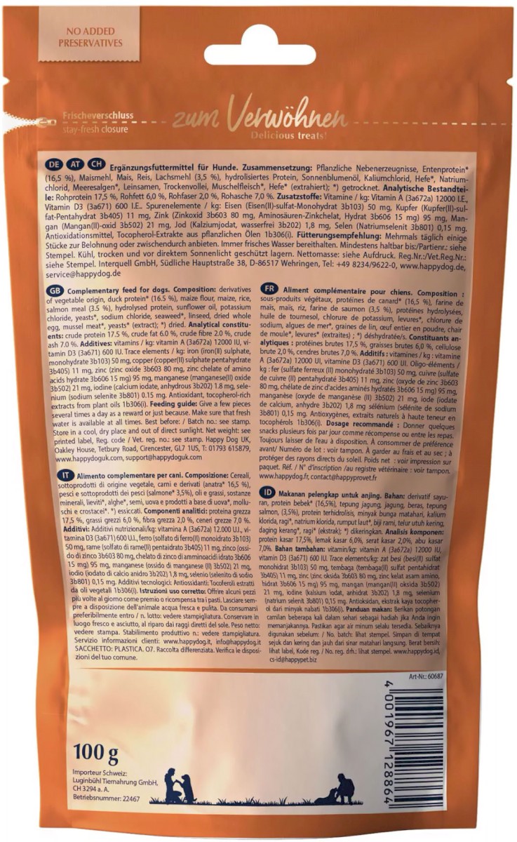 Cechy gryzaków Happy Dog Soft Snack Toscana Duck & Salmon: |
