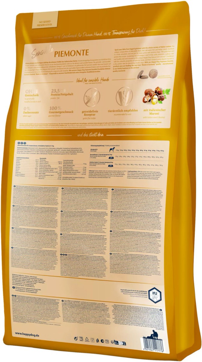 Cechy Happy Dog Adult Sensible Supreme Piemonte Ente, Seefisch & Maroni: |