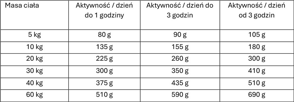 - W okresie przygotowawczym do zawodów i turniejów psy aktywne potrzebują szczególnie wysokowartościowego pożywienia.