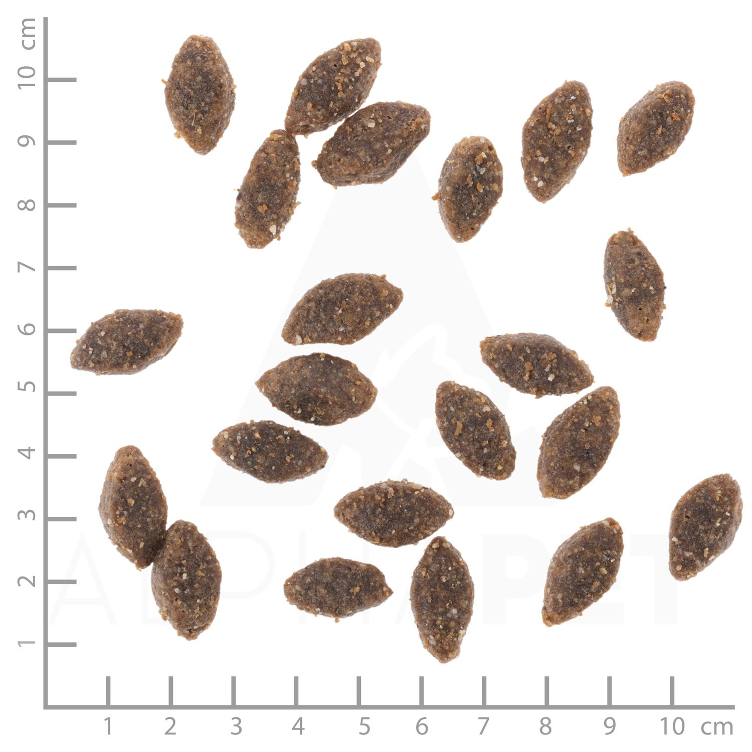 - ŁOSOŚ jako główny składnik - 49% – w tym 25% świeżego mięsa, 18% suszonego oraz 6% oleju z łososia.
