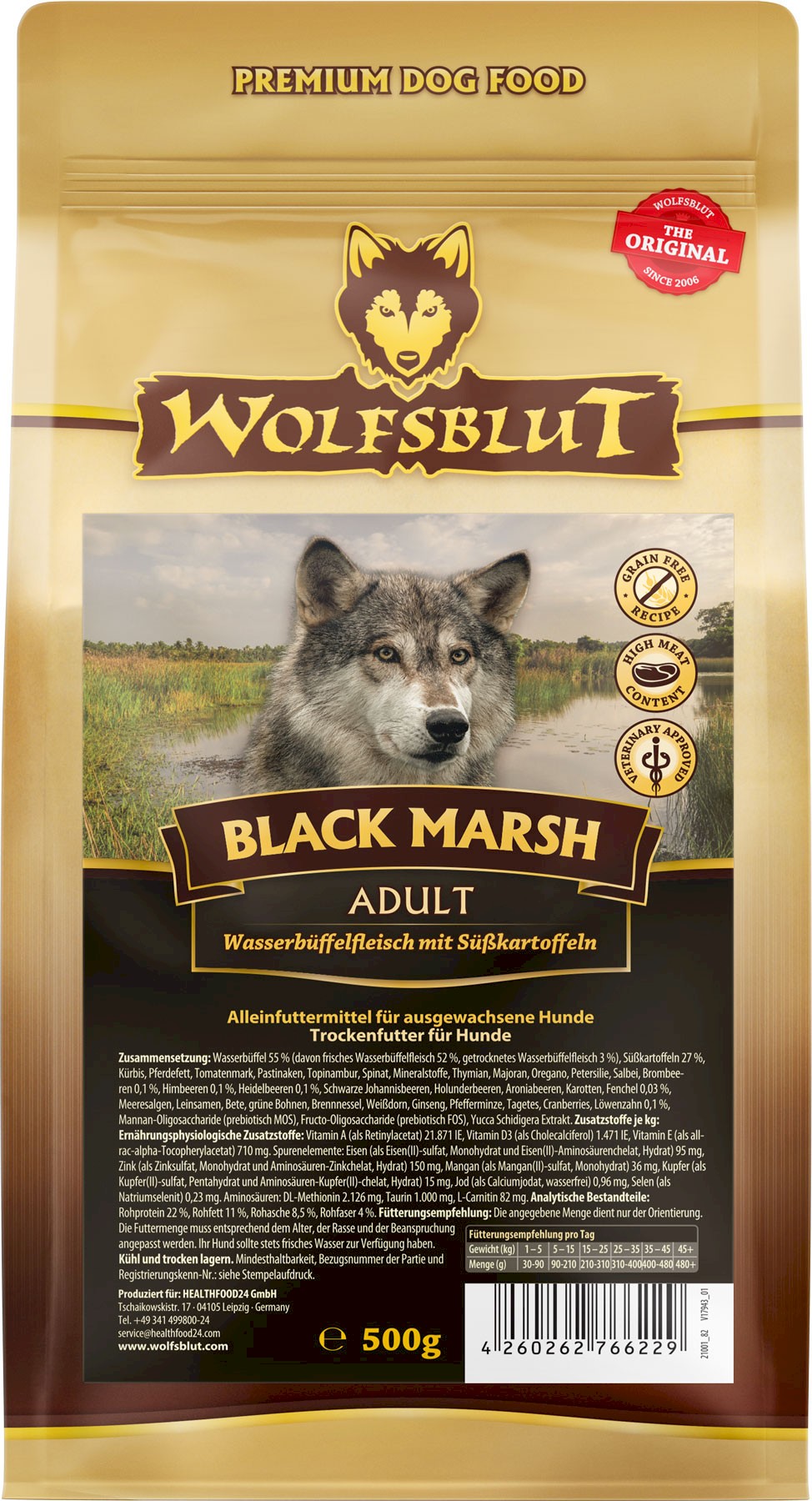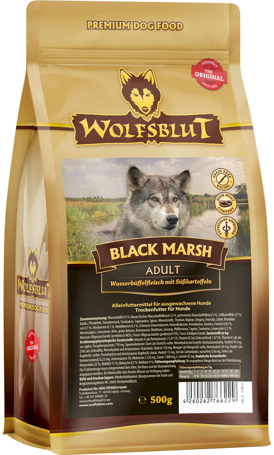 Cechy WOLFSBLUT Black Marsh Adult Water Buffalo Meat with Sweet Potatoes: