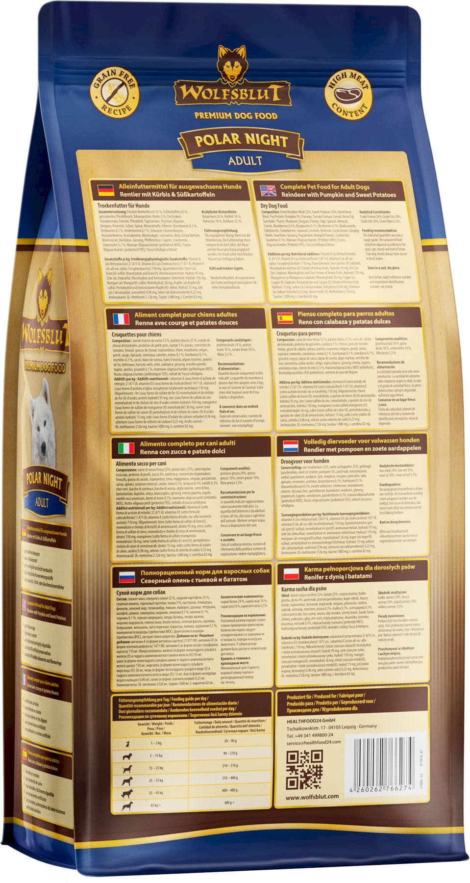 - Karma pełnoporcjowa dla psów dorosłych wszystkich ras ze składem opartym na naturalnej diecie wilka.