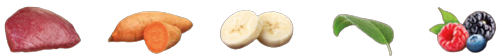 Struś 26% (suszony struś 21%, olej strusia 5%), bataty 25%, ziemniaki, banany 8%, ciecierzyca, dynia, buraki, moringa, komosa ryżowa, minerały, topinambur, papaja, opuncja figowa, szpinak, marchew, pietruszka, tymianek, majeranek, oregano, szałwia 0,1%, pomidory, owoce dzikiej róży, pokrzywa, głóg, mniszek lekarski, żeń-szeń, czarna porzeczka, jeżyny 0,02%, jagody bzu czarnego, ekstrakt z juki Schidigera, maliny 0,01%, borówki 0,01%, jagody aronii.