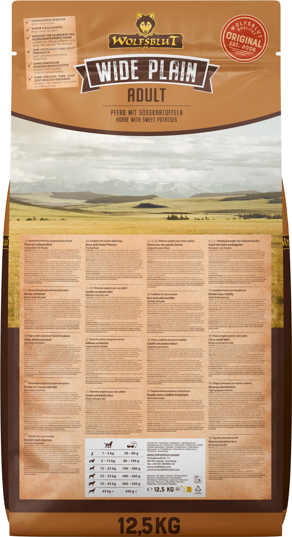 Cechy WOLFSBLUT Wide Plain Adult Horse Meat with Sweet Potatoes:
