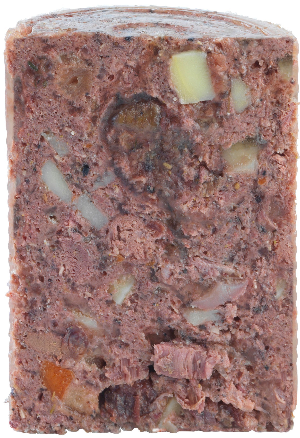 Kaczka 66%, bulion, ziemniaki 1%, marchew, minerały, pomidory, topinambur, jabłka, mieszanka owoców (rokitnik, maliny, czarny bez, czarna porzeczka, borówki, żurawina), siemię lniane, koper włoski, ekstrakt z jukki, mieszanka ziół (anyż, kozieradka, mięta pieprzowa, pietruszka, oregano, tymianek, pokrzywa, mniszek lekarski, głóg, żeń-szeń), nowozelandzki małż zielony.