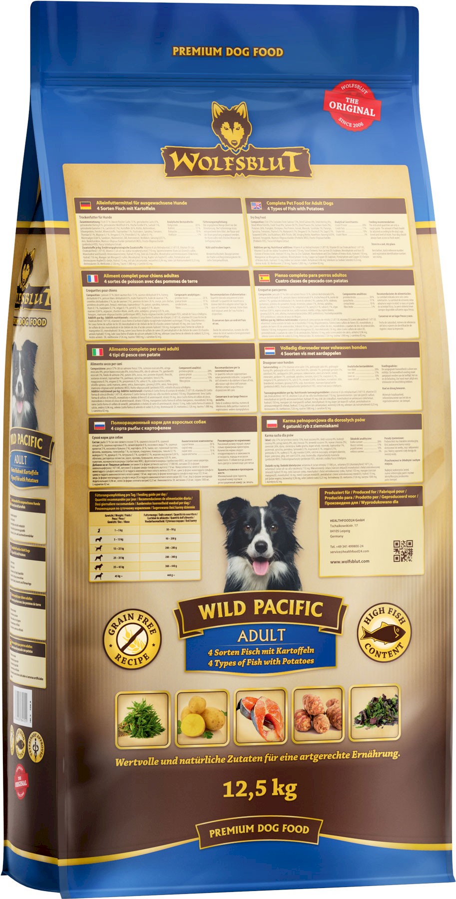 Cechy WOLFSBLUT Wild Pacific Adult 4 Types of Fish with Potatoes: