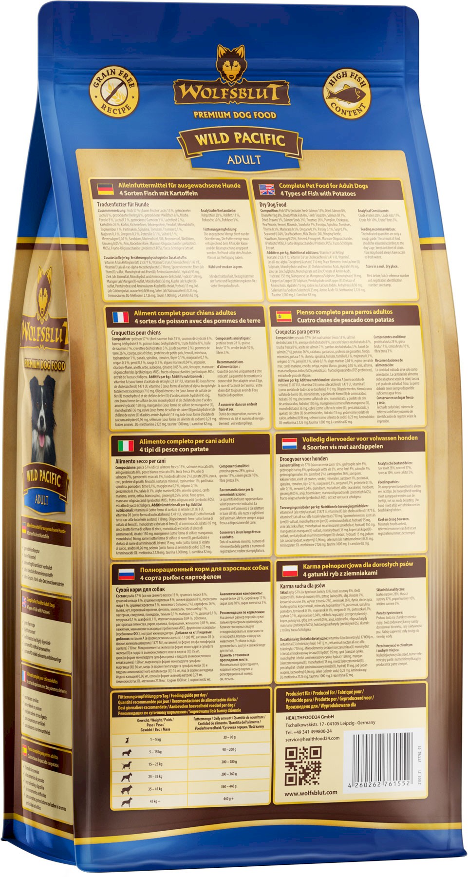 Cechy WOLFSBLUT Wild Pacific Adult 4 Types of Fish with Potatoes: