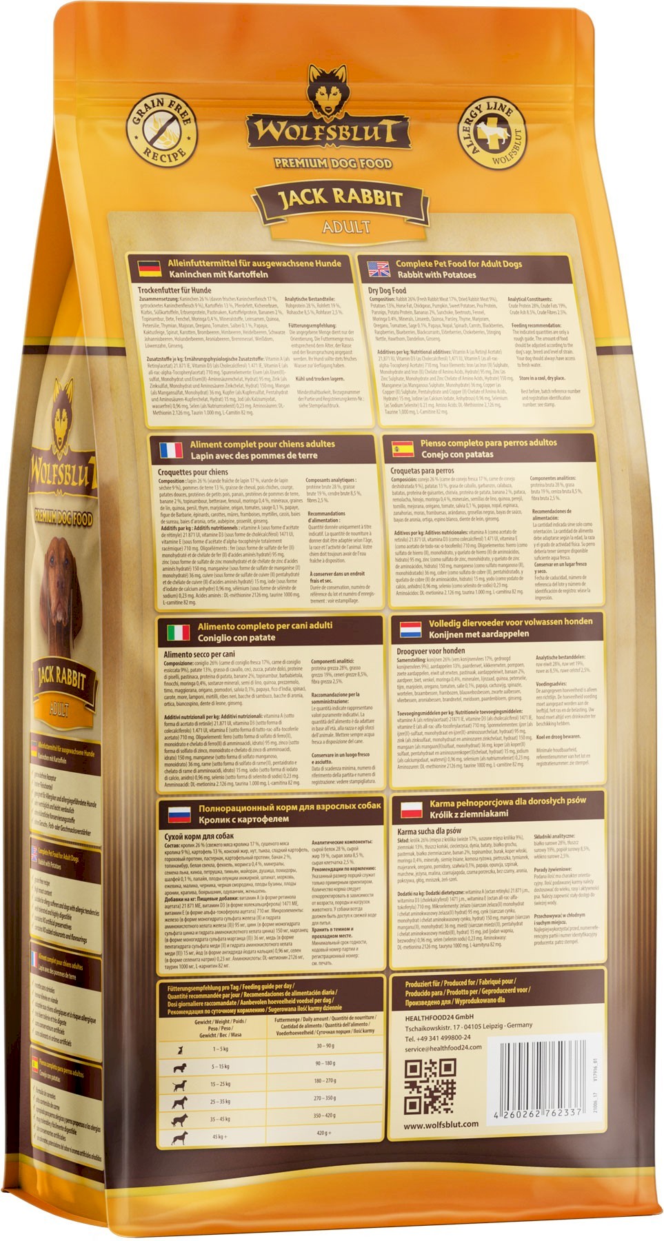 - Karma pełnoporcjowa dla psów dorosłych wszystkich ras ze składem opartym na naturalnej diecie wilka.