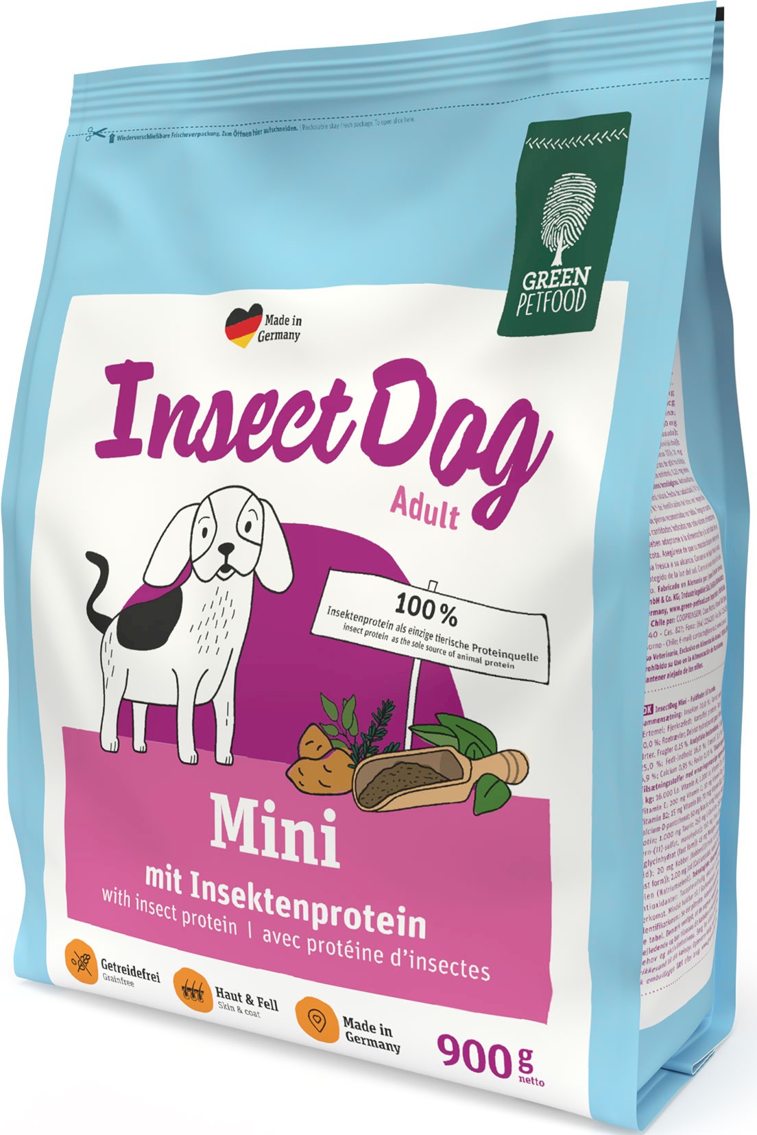 Cechy karmy GREEN PETFOOD Insect Dog Adult Mini: |