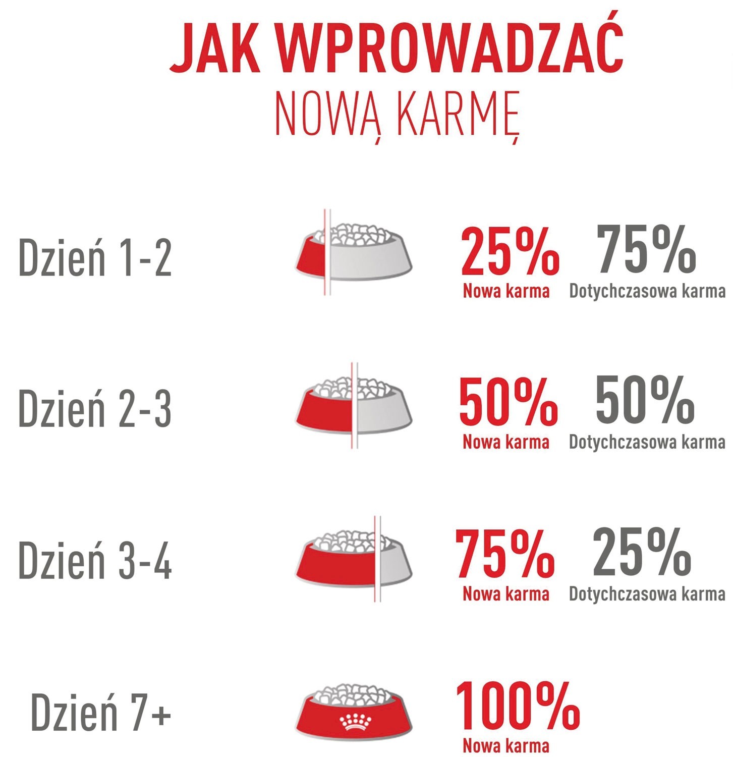 Należy ściśle przestrzegać zalecanych dziennych dawek karmy, znajdujących się na opakowaniu.