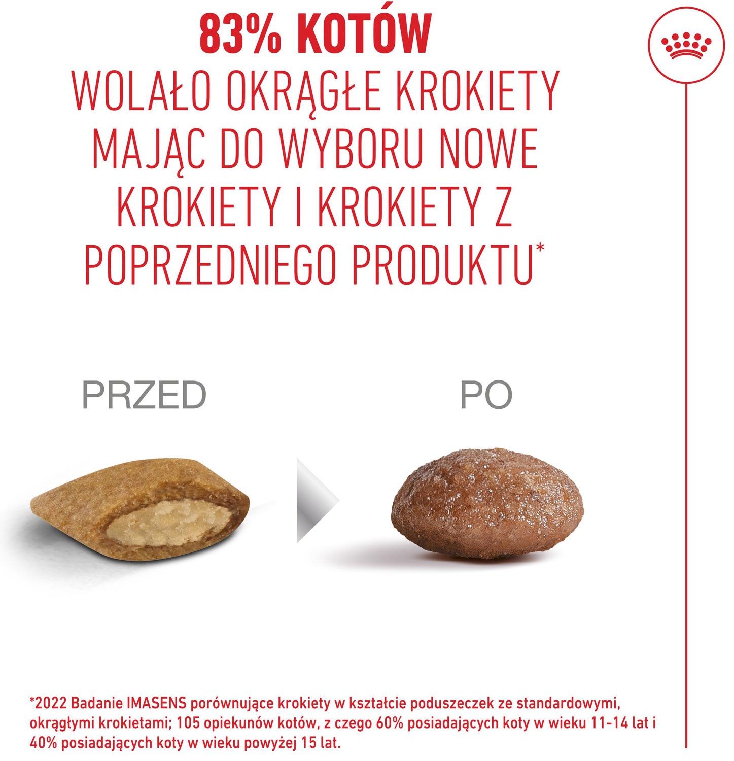 - Tekstura krokietów ułatwiająca jedzenie została opracowana i przetestowana przez koty starsze tak, aby ułatwić im jedzenie i sprawić, aby każdy posiłek był przyjemnością.