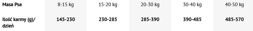 - pokrywa zapotrzebowanie na najważniejsze w diecie psa pełnowartościowe białko bogate w aminokwasy egzogenne oraz cenne kwasy tłuszczowe.