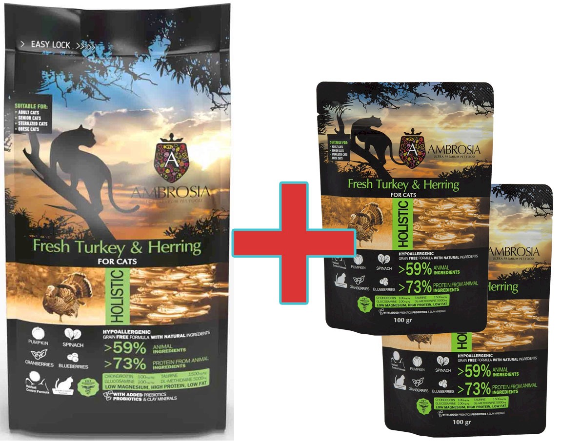 AMBROSIA Cat Senior / Adult Sterilized Light Fresh Turkey / Herring Świeży Indyk i Śledź 1,5kg + 200g GRATIS !