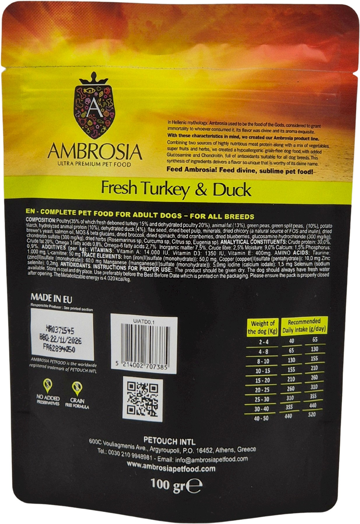 AMBROSIA Dog Adult Fresh Turkey / Duck Świeży Indyk i Kaczka 100g ⬛⬛BLACKWEEK⬛⬛