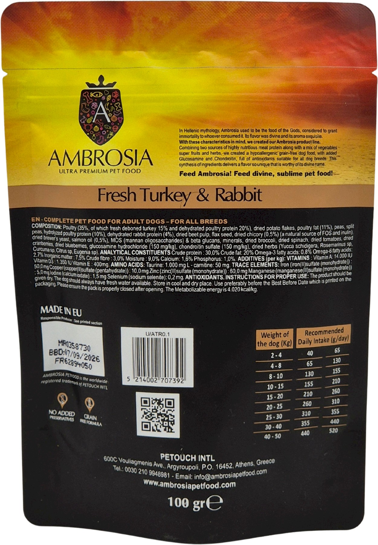 AMBROSIA Fresh Turkey & Rabbit Adult Dog for All Breeds to: