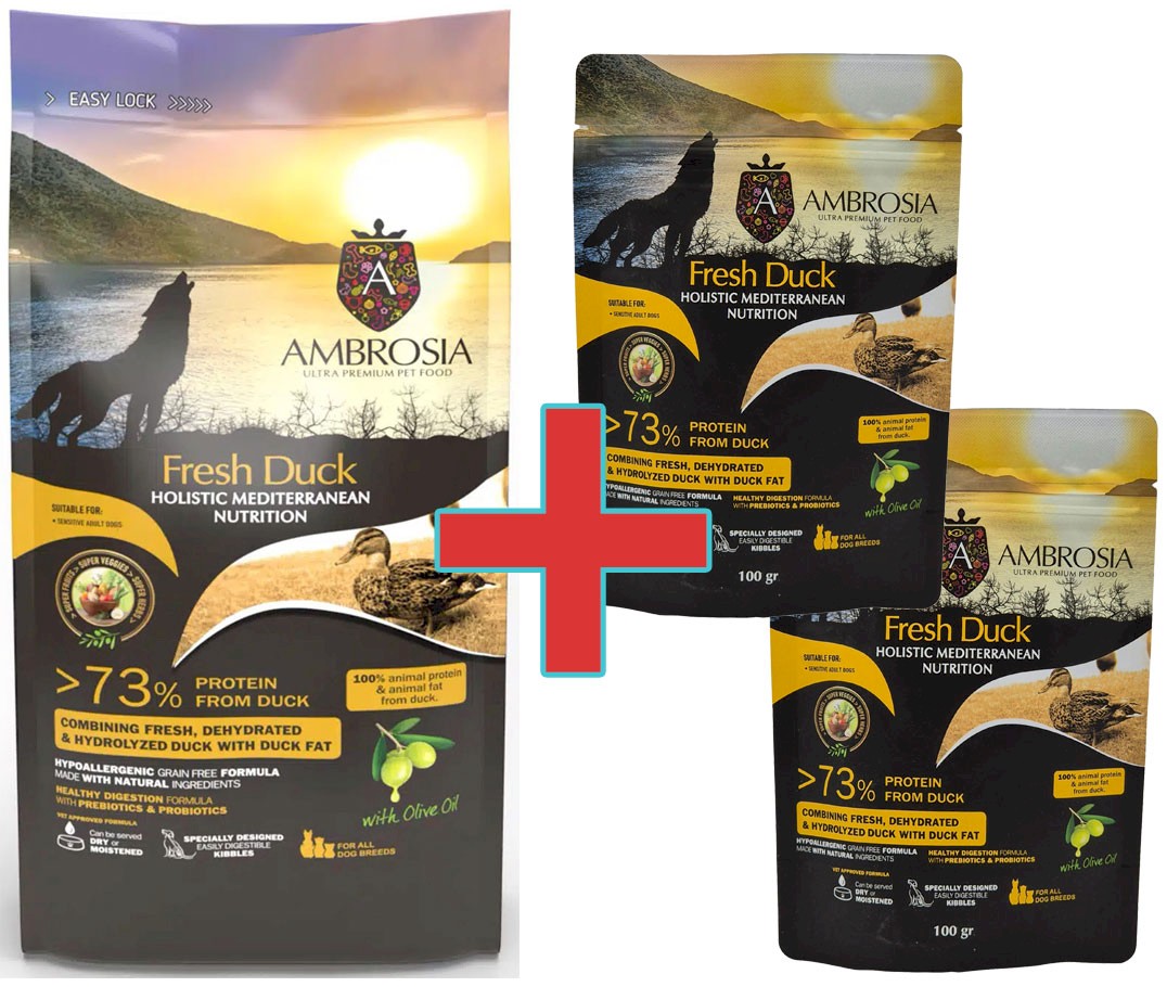 AMBROSIA Dog Adult Sensitive Mediterranean Fresh Duck Świeża Kaczka 1,5kg + 200g GRATIS