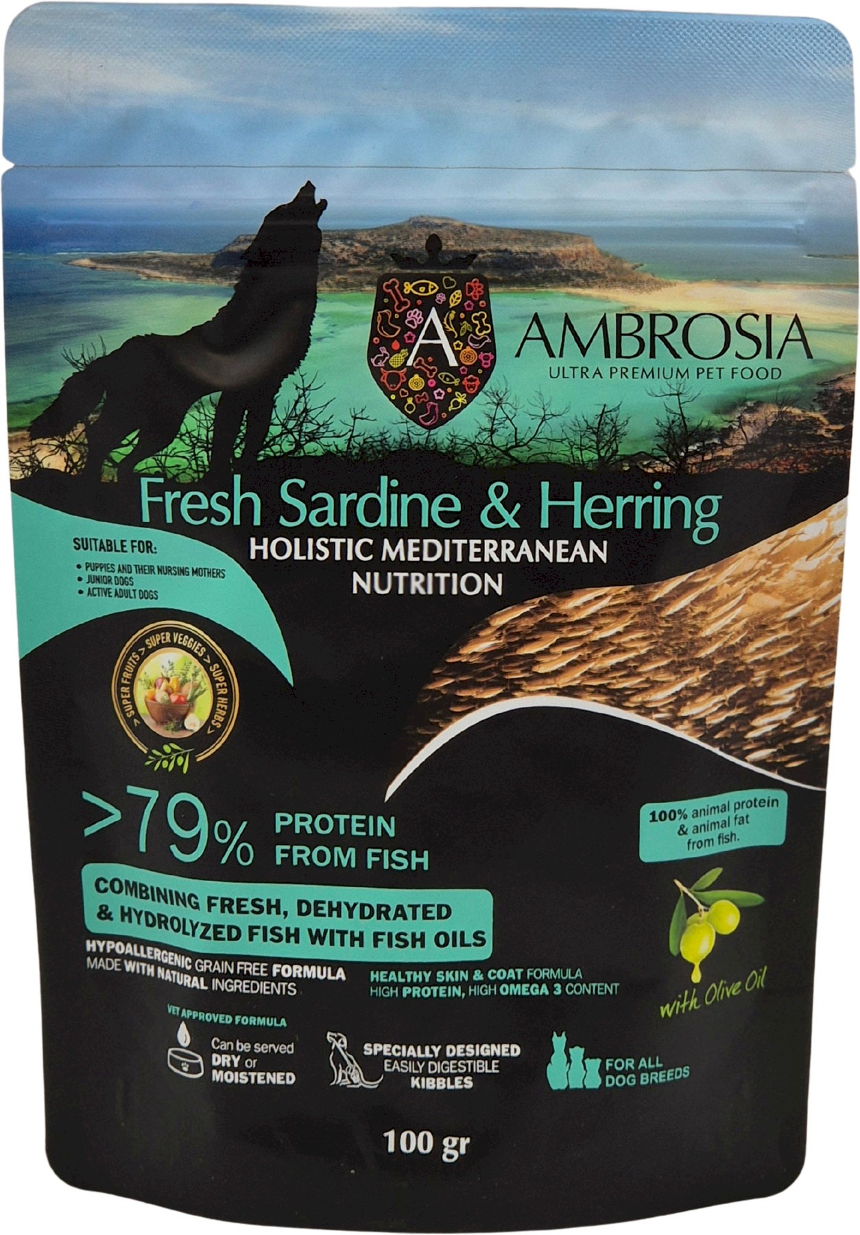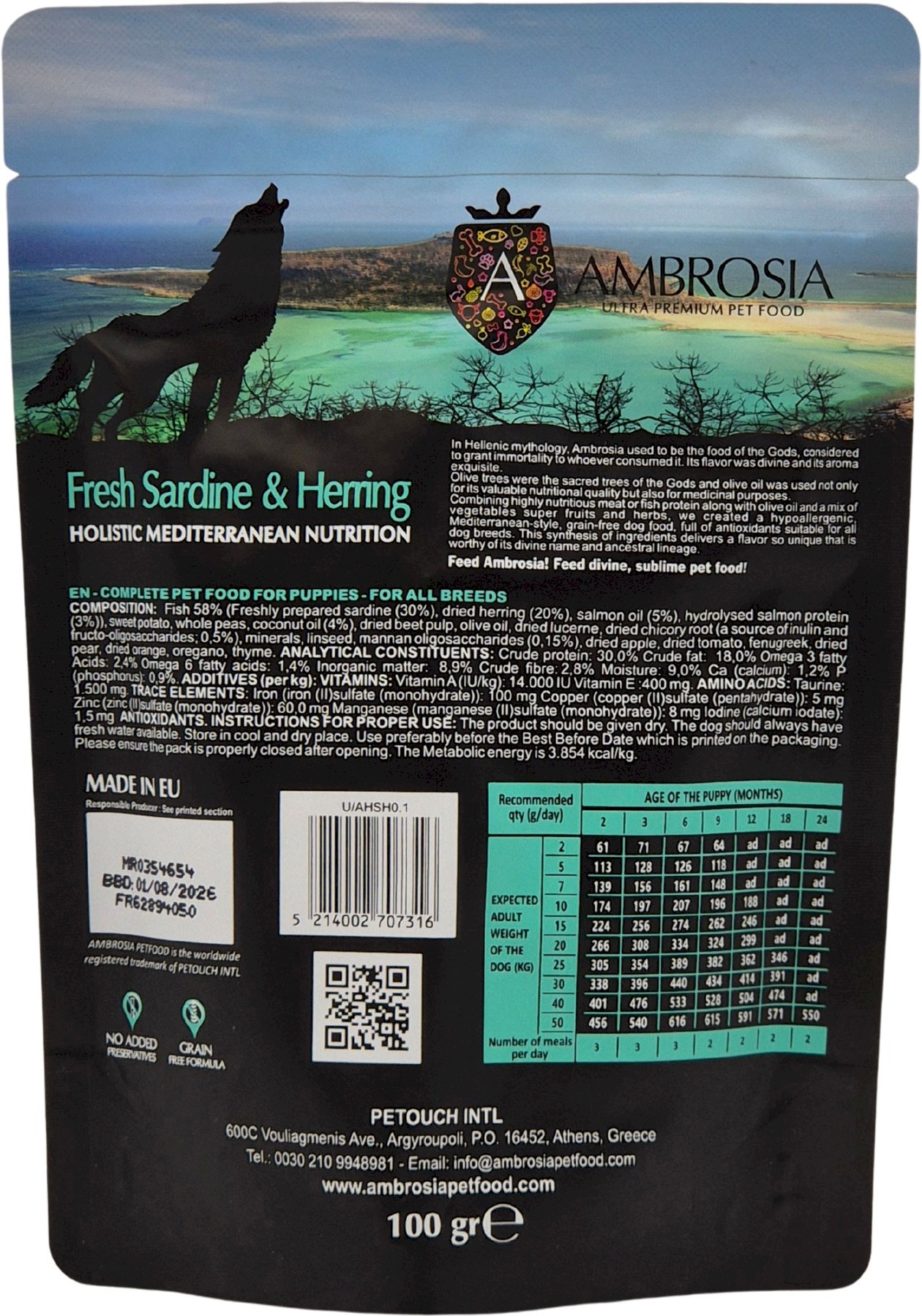 AMBROSIA Dog Puppy Mediterranean Fresh Sardine / Herring Świeże Ryby 100g ⬛⬛BLACKWEEK⬛⬛