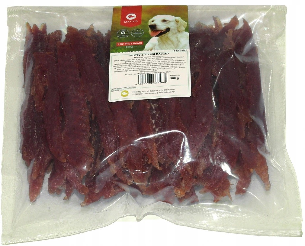 Pytanie o produkt MACED Strips Paski z Piersi Kaczki 500g: