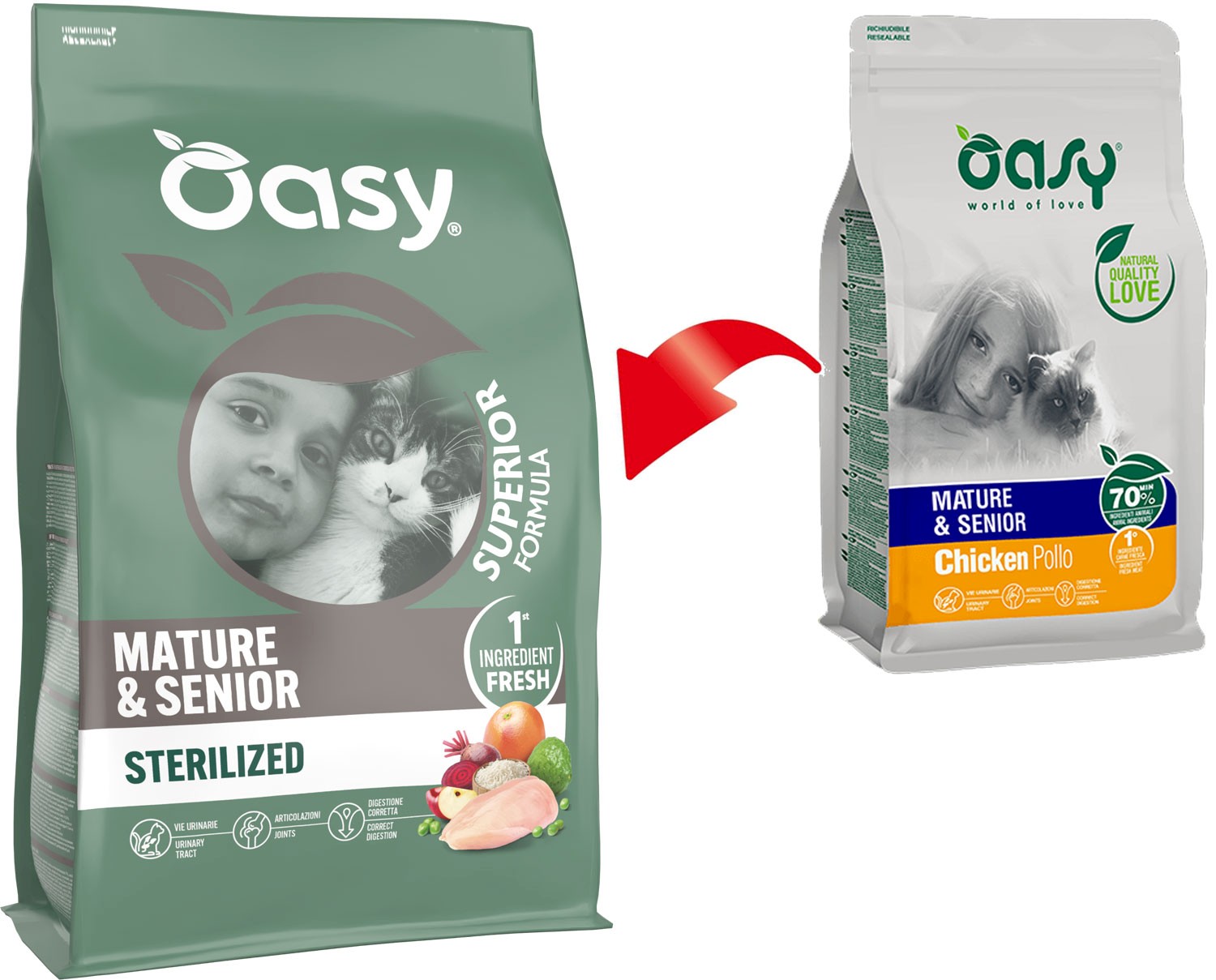 Cechy suchej karmy OASY Mature & Senior Chicken Pollo: |