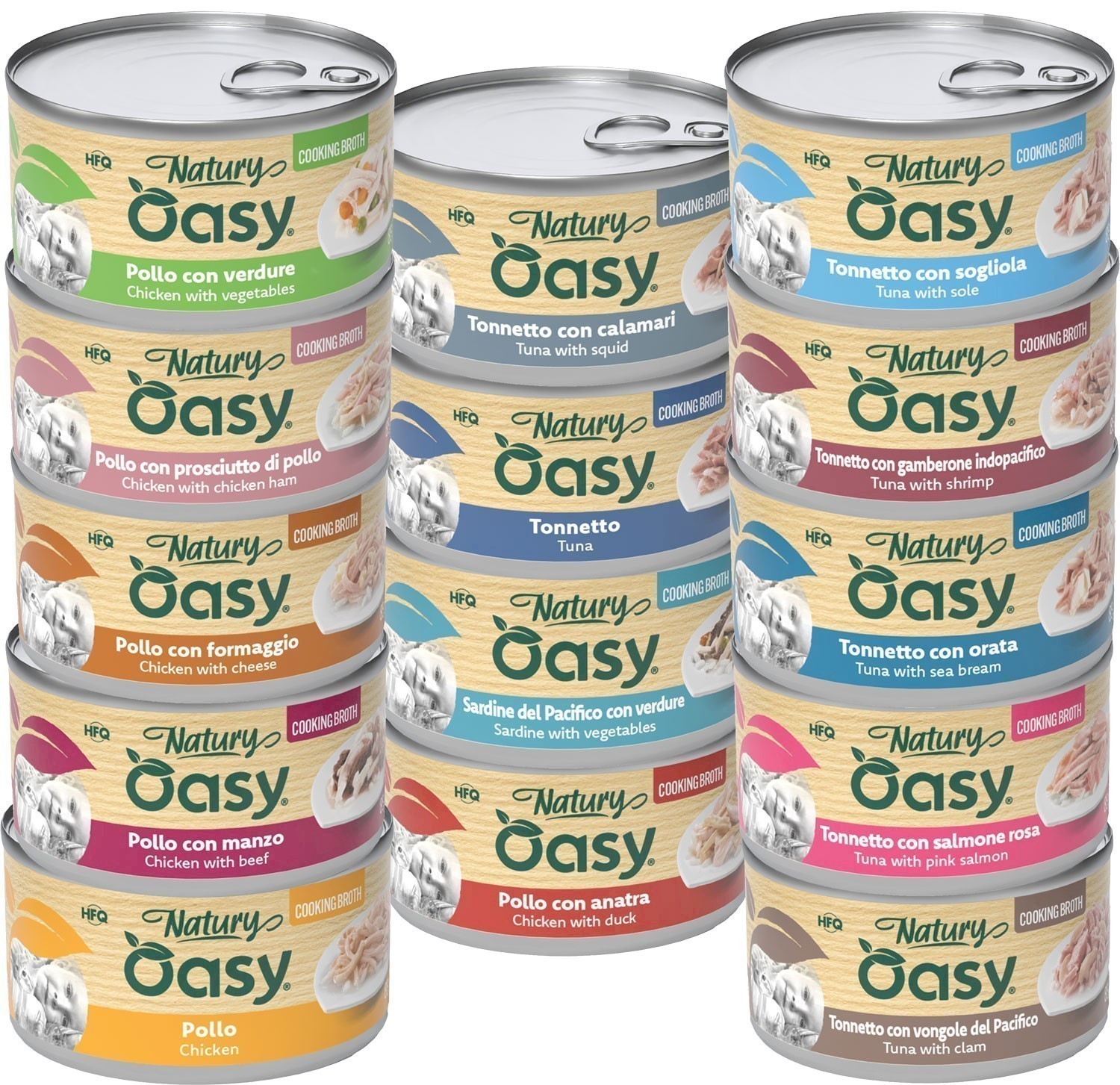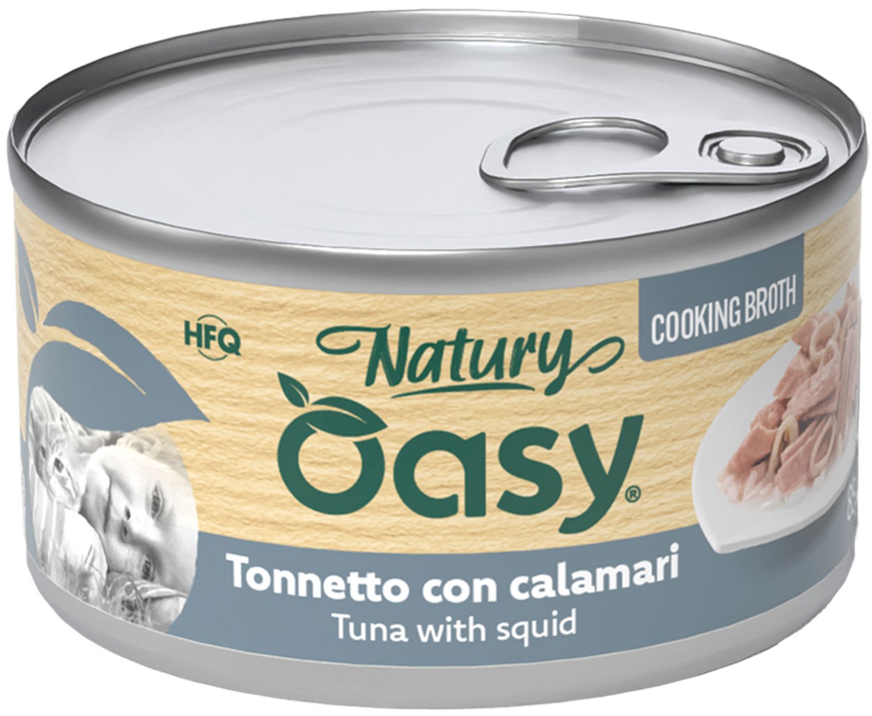 Pytanie o produkt OASY Cat Natury Cooking Brooth Tuńczyk Kalmary w bulionie Puszka 85g: