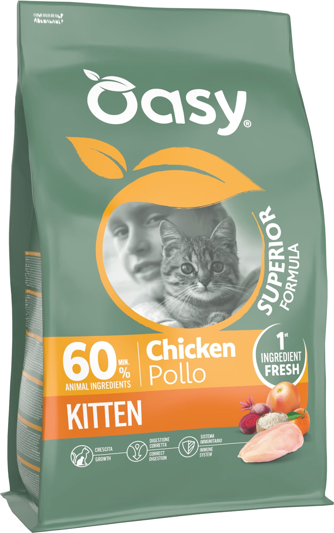 Cechy suchej karmy OASY Kitten Chicken Pollo: |