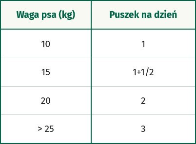 - Indywidualne zapotrzebowanie może zmieniać się w zależności od wieku i poziomu aktywności psa.