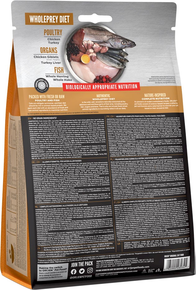 - Przez okres 5-7 dni należy mieszać karmę Orijen z poprzednio stosowaną karmą, stopniowo zwiększając jej ilość.
