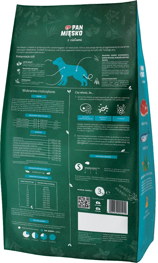 PAN MIĘSKO Wołowina Tuńczyk Zioła dla psa S 3kg