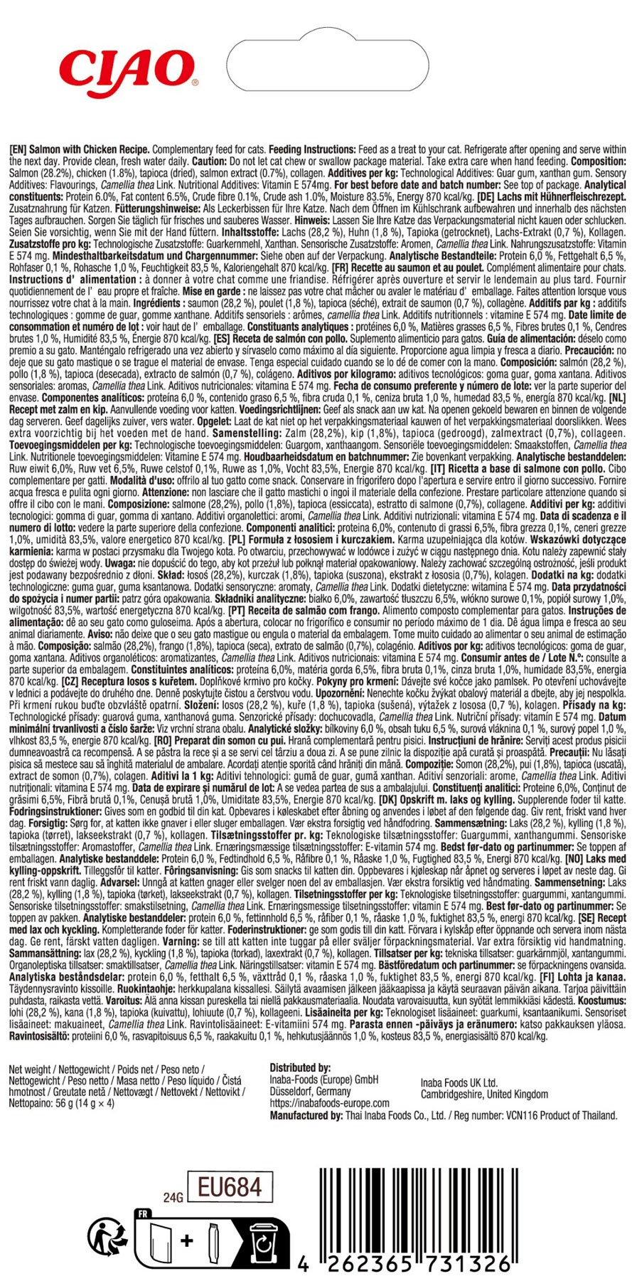 Przysmak dla kota Inaba Cat Churu Cat Treat Salmon with Chicken Recipe to: