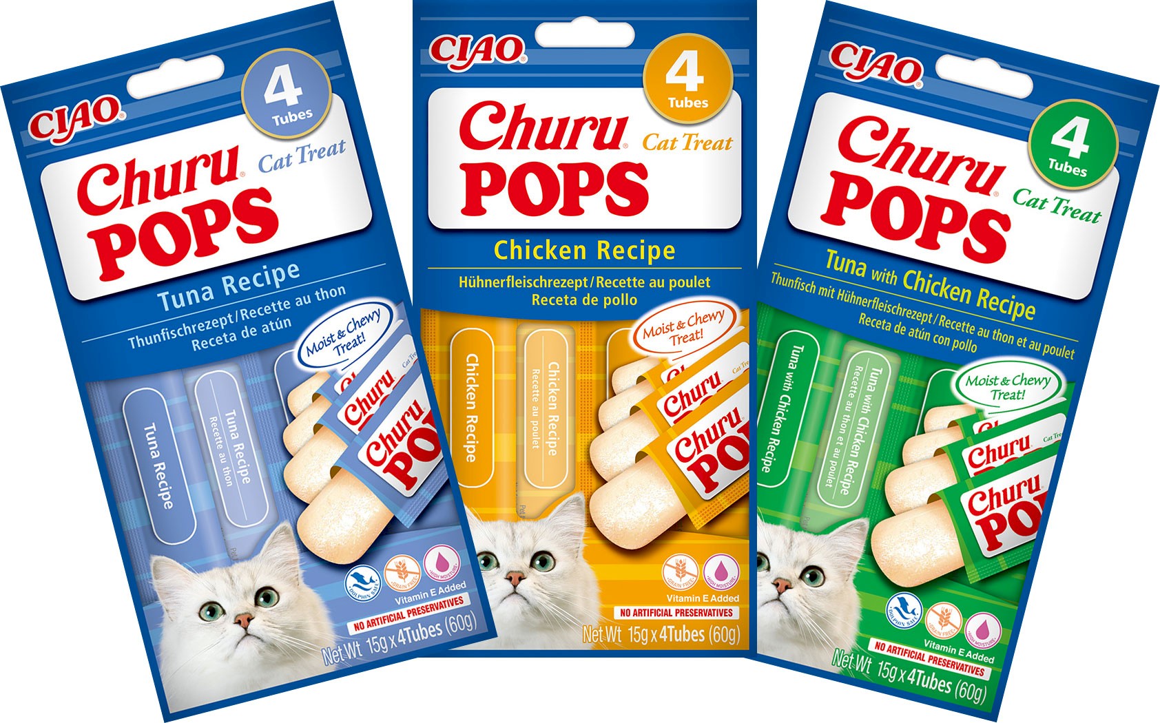 - Churu Pops - to Linia niskokalorycznych przysmaków o miękkiej, wybitnie smacznej i soczystej konsystencji.